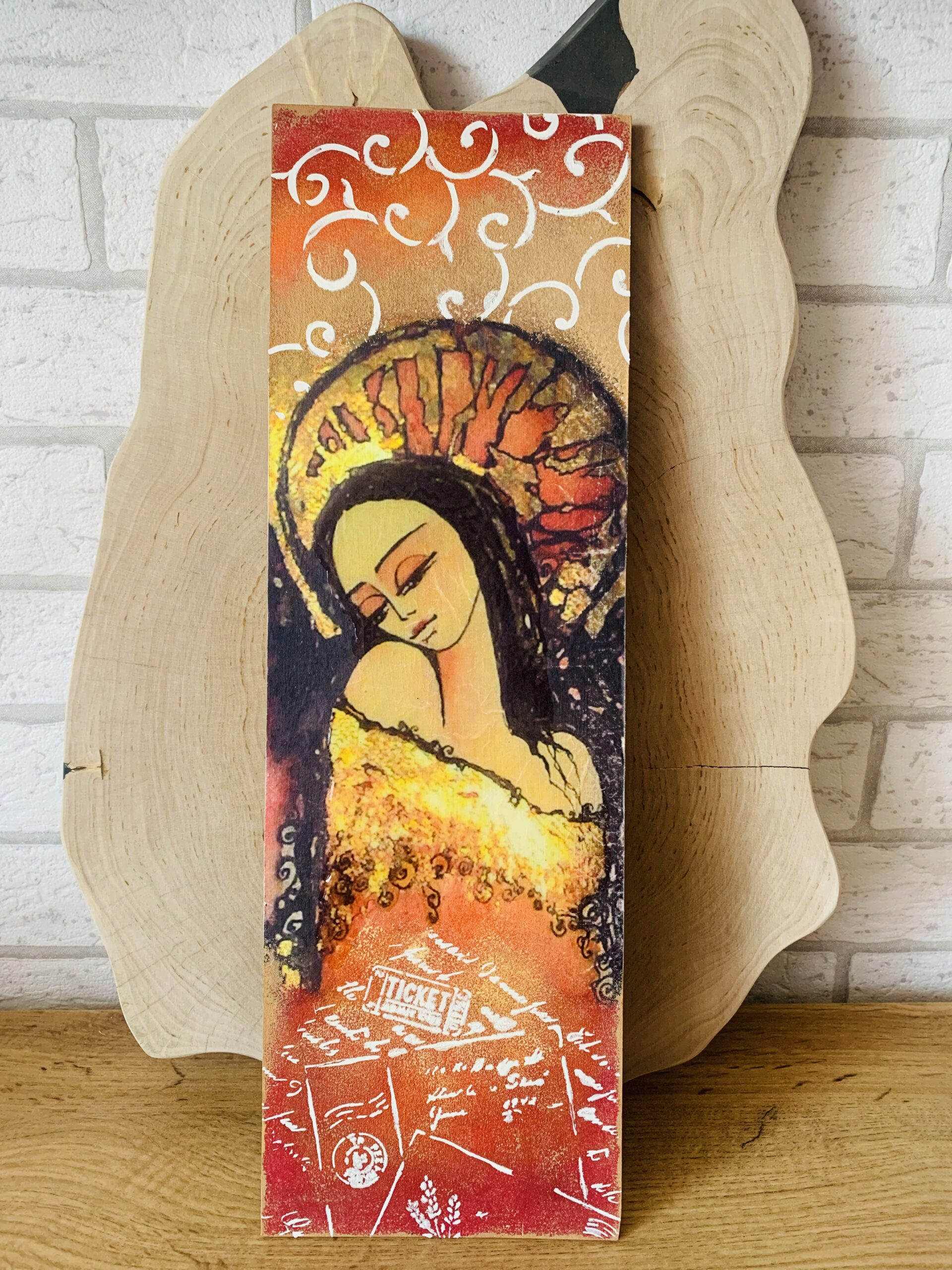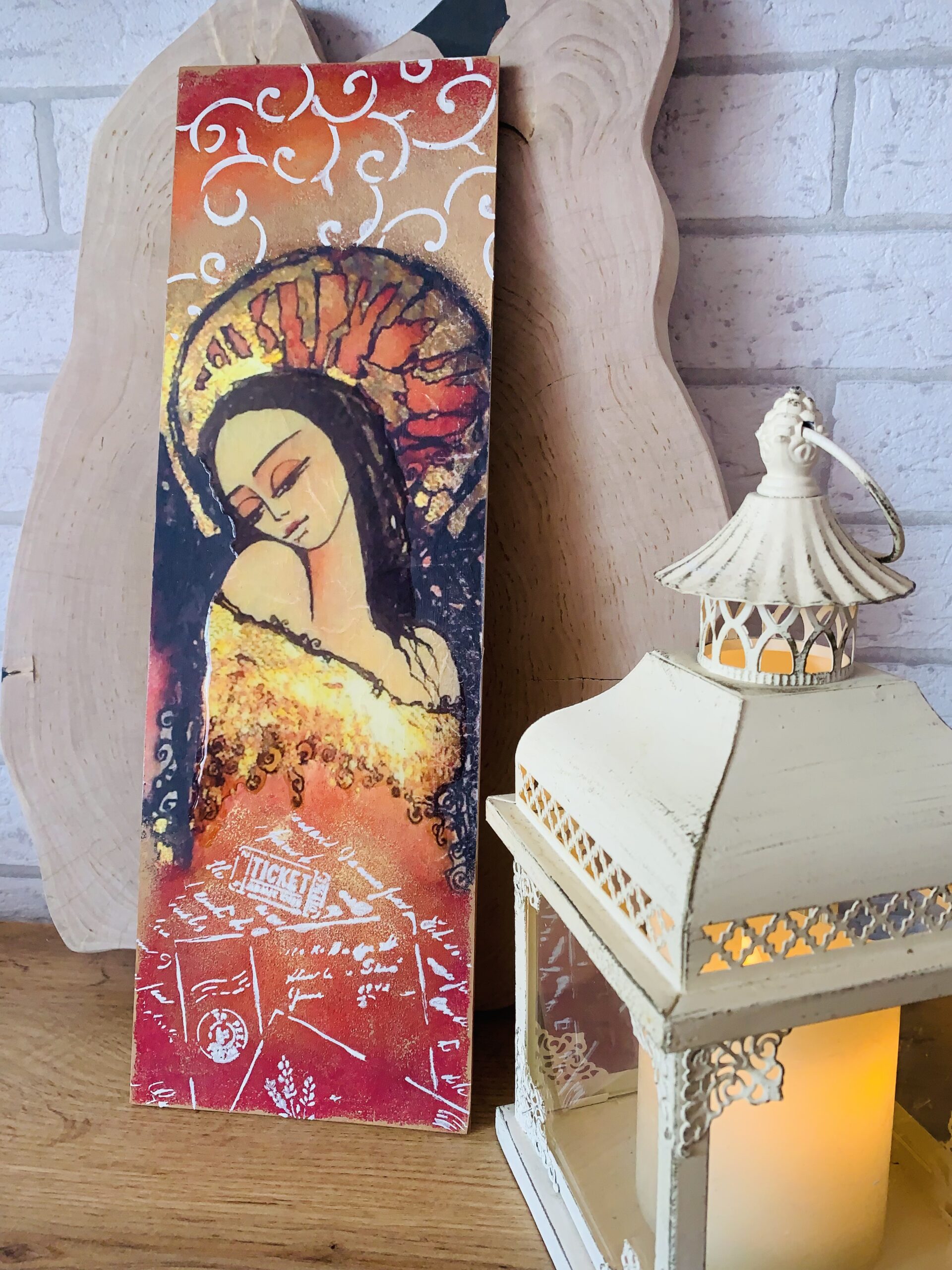 Charakter: dekoracja ścienna z aniołem, rękodzieło