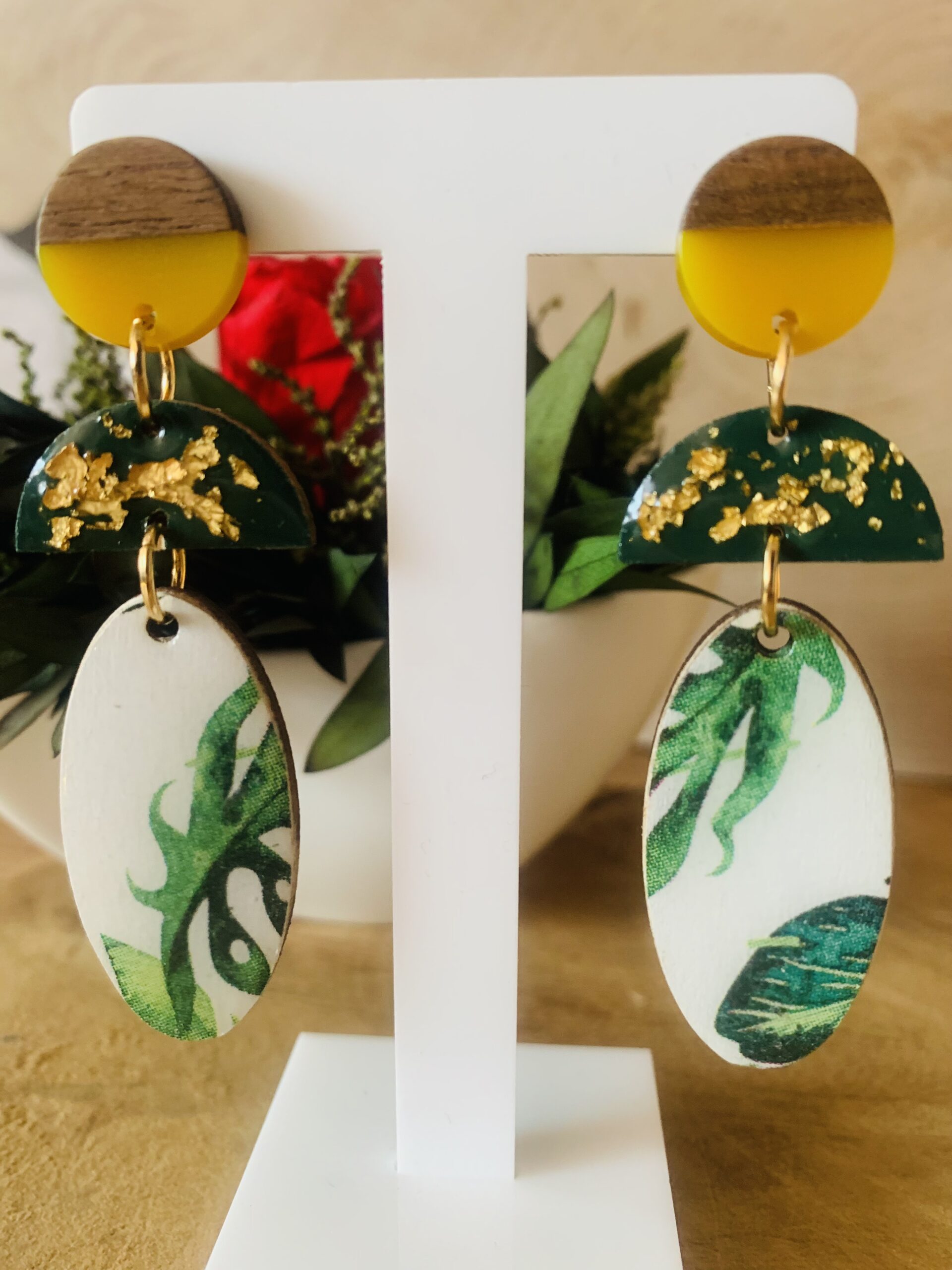 Te kolczyki z drewna i żywicy zostały wykonane ręcznie z dbałością o każdy detal. Drewniana baza w połączeniu z trwałą, przezroczystą żywicą zapewnia komfort, wytrzymałość i subtelny połysk. Zapięcia ze stali chirurgicznej gwarantują bezpieczeństwo nawet dla wrażliwej skóry.