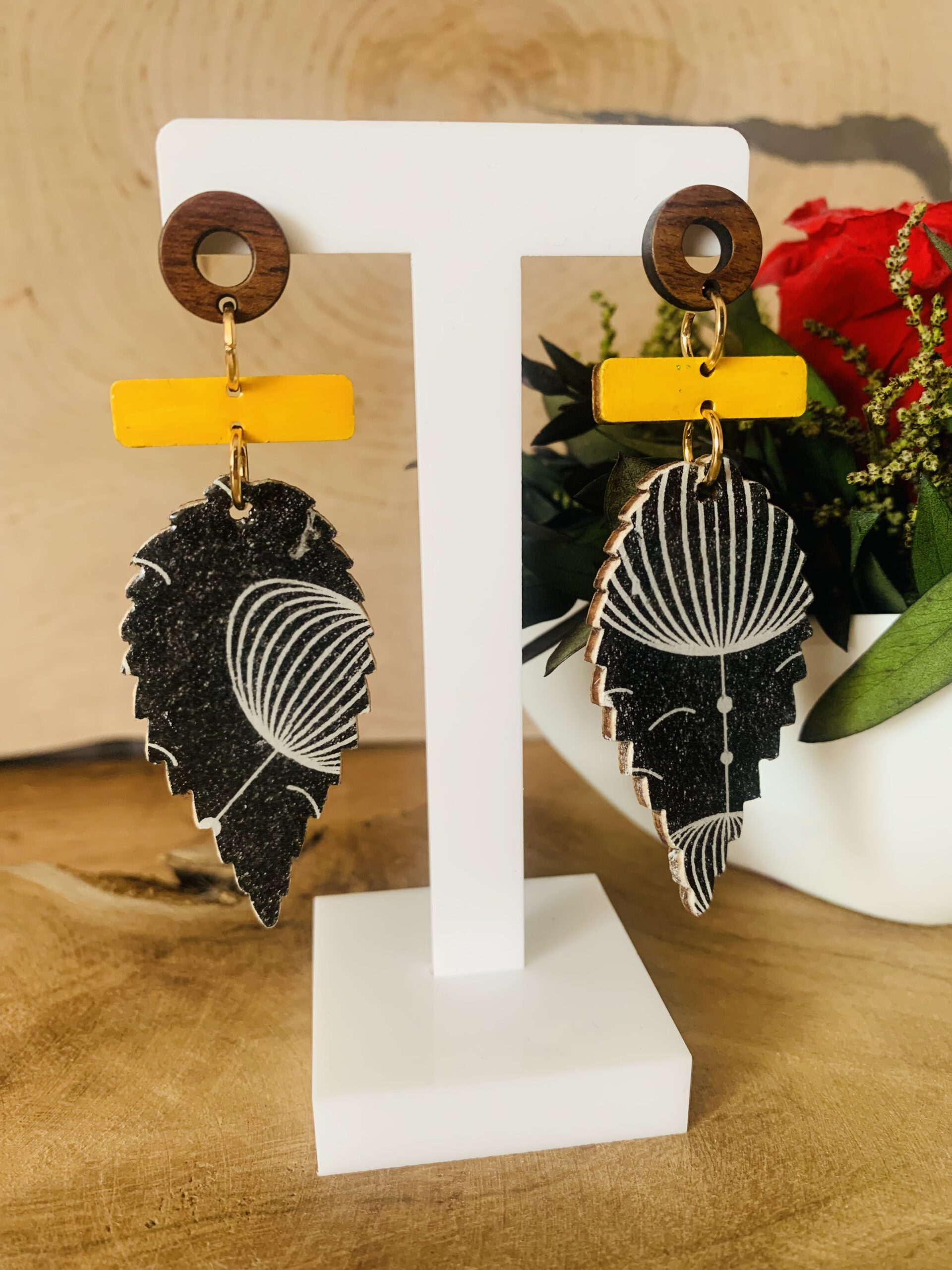 Lekkie i wygodne w noszeniu, doskonale sprawdzą się na co dzień, delikatnie rozświetlając stylizację. Ręczne wykonanie z drewna i żywicy, w połączeniu ze stalą chirurgiczną, zapewnia trwałość, komfort oraz bezpieczeństwo dla skóry – nawet przy długim noszeniu.