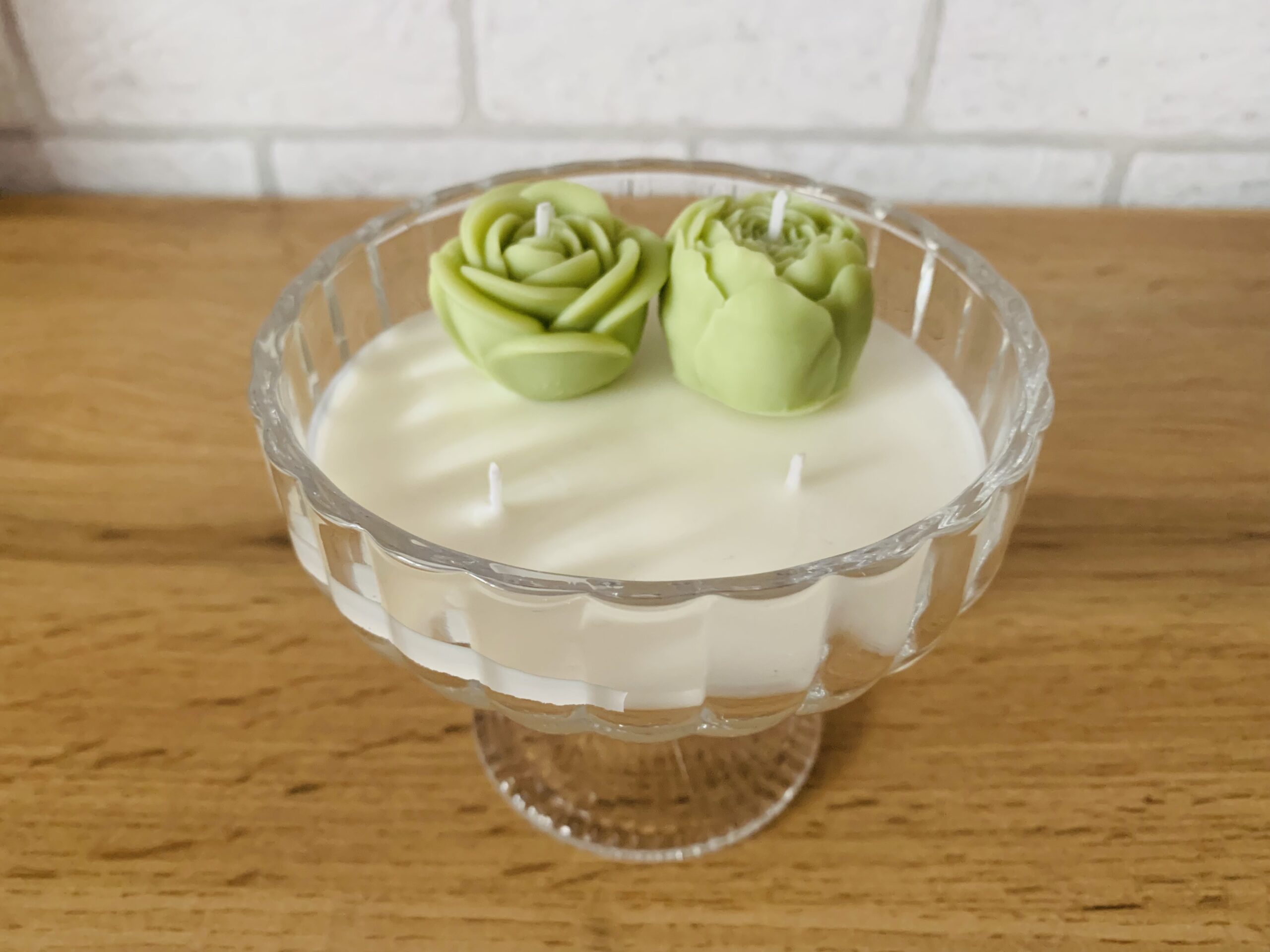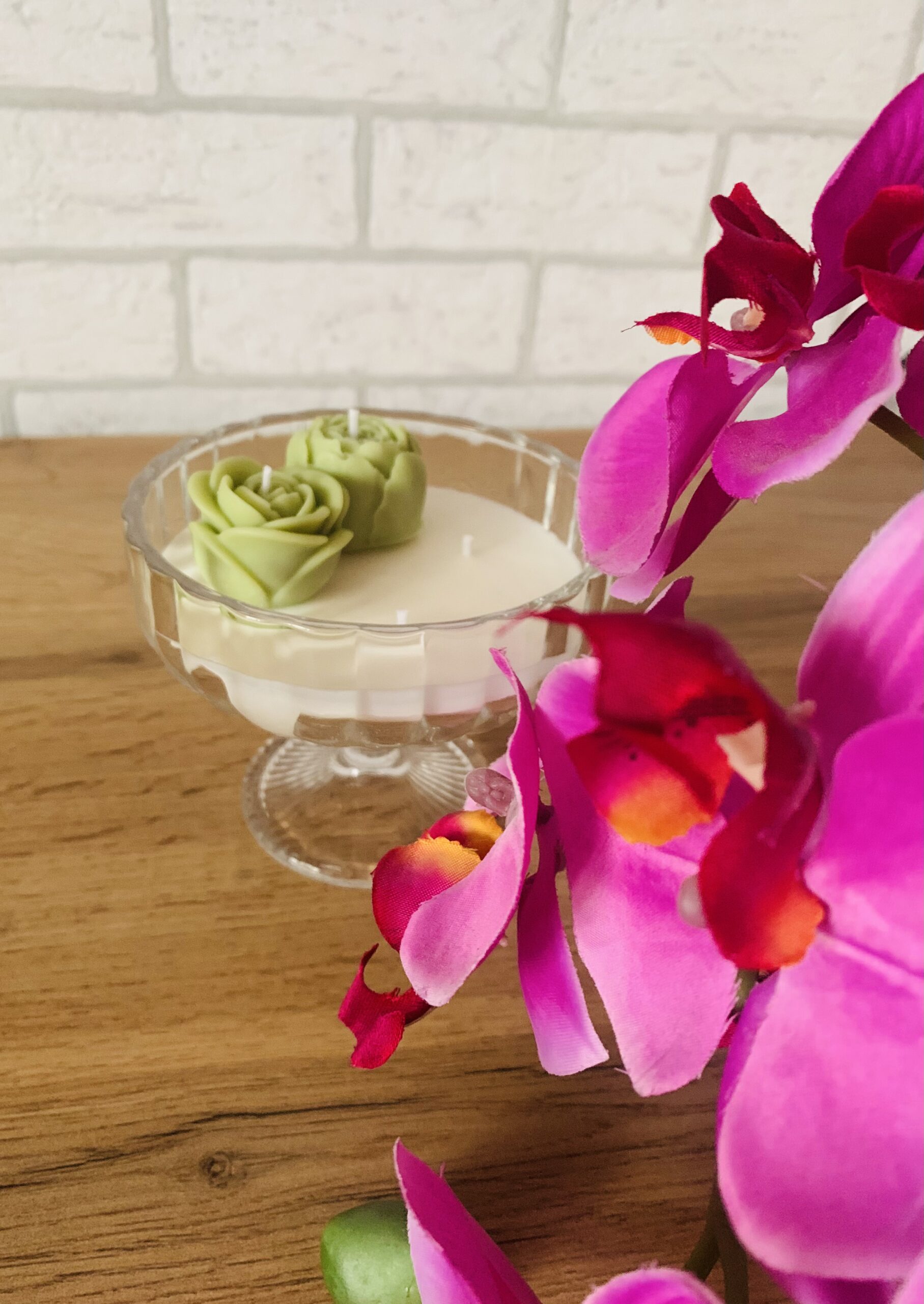 Świeca sojowa ręcznie tworzona, umieszczona w szklanym naczyniu. Każdy egzemplarz powstaje od podstaw w mojej pracowni – dzięki temu jest unikatowy i dopracowany w najmniejszym detalu.